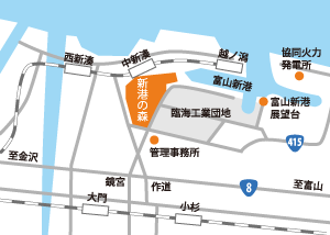 バス利用JR小杉駅より新湊行きバス約10分新港の森下車徒歩約5分